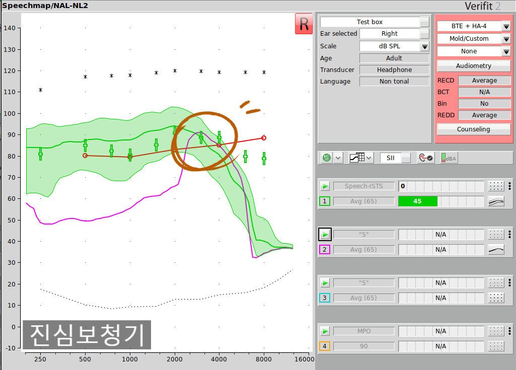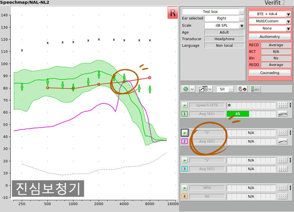 다음 단계는 aided /s/ 를 표준 조건에서 측정해, /s/가 가청 대역 안으로 들어오는지 확인하는 것입니다.